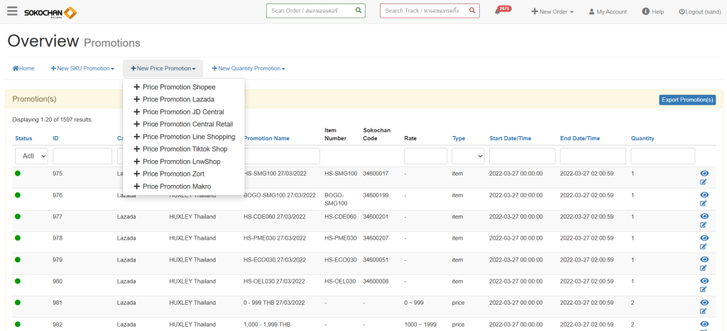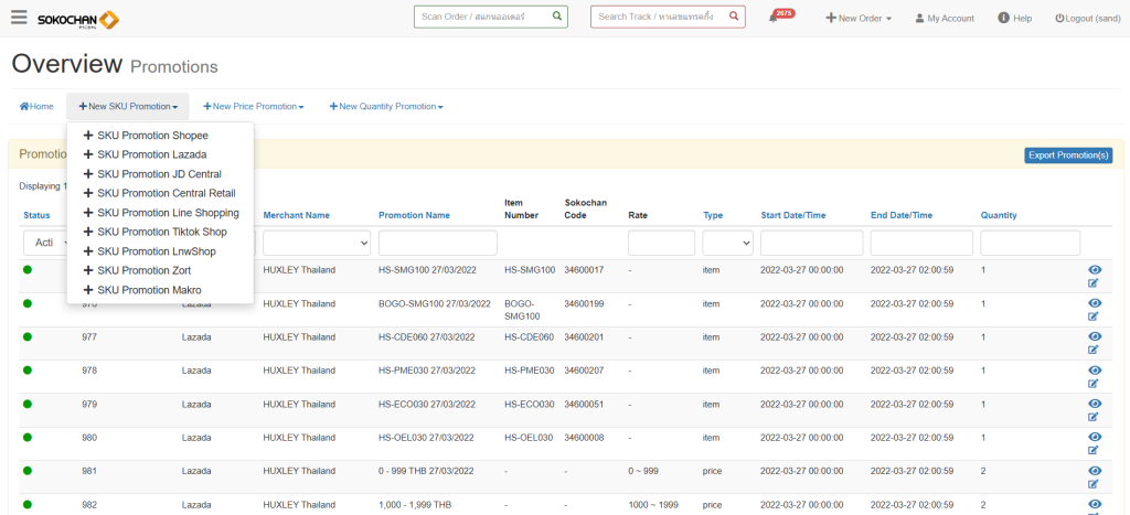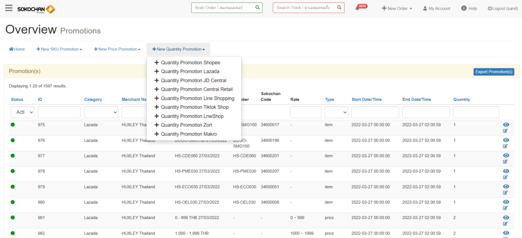 promotion จะมี 3 ประเภทประกอบด้วย โดยในทุกประเภทจะมีการสร้างแยกตามช่องทางการขาย