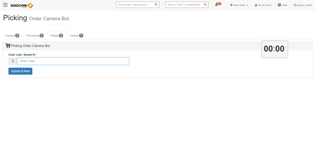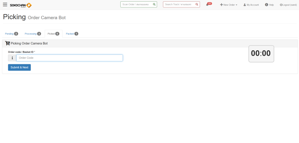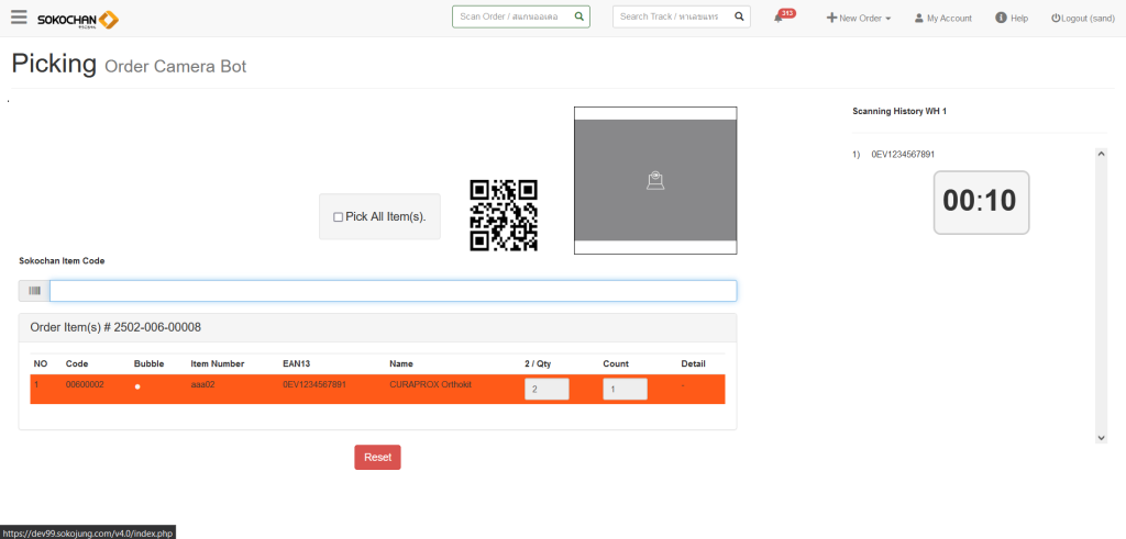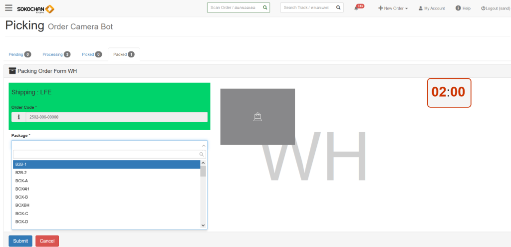 เมื่อเข้าสู่หน้า Pick Camera WH ให้ทำการสแกนเลขออเดอร์จากใบ Picking Slip (ใบหยิบงาน)