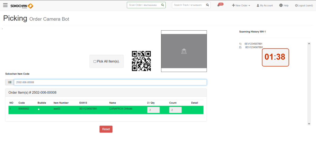 เมื่อสแกนจำนวนสินค้าทั้งออเดอร์ครบแล้วให้ทำการสแกนเลขออเดอร์บนใบ Picking Slip (QR Code บนหน้าจอก็สามารถสแกนได้เช่นกัน) อีกครั้งเพื่อทำการยืนยันจำนวนสินค้าของออเดอร์ว่าสินค้าครบถ้วน พร้อมสำหรับการแพ็ค